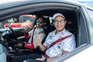 อีกหนึ่งไฮไลต์ในช่วง HOT LAP แบบเอ็กซ์คลูซีฟ ที่นำผู้บริหารโตโยต้าและแขกผู้มีเกีรติจากภาครัฐ ได้สัมผัสประสบการณ์ความแรงของรถสปอร์ตสมรรถนะสูง ตระกูล GR Series ทั้ง 4 รุ่น ได้แก่ GR 86, GR Supra, GR Corolla และ GR Yaris บนสนามแข่งที่ได้มาตรฐาน FIA Grade 3 ภายใต้ฝีมือการขับของนักแข่งมืออาชีพจากโตโยต้า กาซู เรซซิ่ง ไทยแลนด์