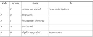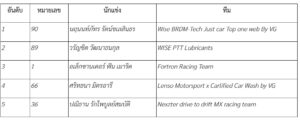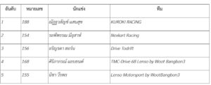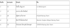 ผลการแข่งขัน YARIS One Make Race : Division 2 (แข่งขัน 8 รอบ)