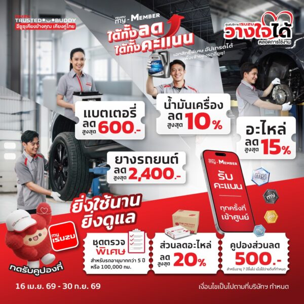 อีซูซุเชิญชวนลูกค้าคนสำคัญเช็กรถหลังเดินทางไกล กับแคมเพจ์น “ได้ทั้งลด ได้ทั้งคะแนน” คุ้มยาวตลอดปี