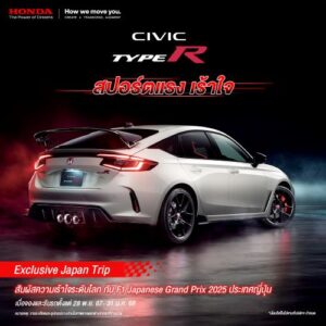 ฮอนด้า เอาใจแฟนๆ ที่ชื่นชอบความสปอร์ต มอบทริปสุดเอกซ์คลูซีฟ ร่วมชม F1 ที่ประเทศญี่ปุ่น ในเดือน เม.ย. 2568 เมื่อซื้อ ฮอนด้า ซีวิค ไทป์ อาร์ ตั้งแต่ 28 พ.ย. 2567 – 31 ม.ค. 2568