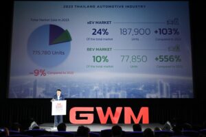 กรุงเทพฯ 9 กุมภาพันธ์ 2567 – เกรท วอลล์ มอเตอร์ ประกาศความสำเร็จของการดำเนินงาน รวมถึงแถลงกลยุทธ์ด้านต่าง ๆ เพื่อก้าวขึ้นสู่ 3 อันดับแรก ของแบรนด์รถยนต์พลังงานไฟฟ้า (xEV) ในประเทศไทย ภายในระยะเวลา 3 ปี หรือภายในปี 2569 ภายในงานเฉลิมฉลองครบรอบ 3 ปีของการดำเนินธุรกิจในประเทศไทย หรือ GWM 3rd Brand Anniversary ณ โรงภาพยนตร์ ICONSIAM Cineconic ศูนย์การค้า ICONSIAM พร้อมเดินหน้าขับเคลื่อนการเติบโตของอุตสาหกรรมยานยนต์ไทยสู่การเป็นศูนย์กลางยานยนต์ไฟฟ้าในอาเซียนอย่างยั่งยืน