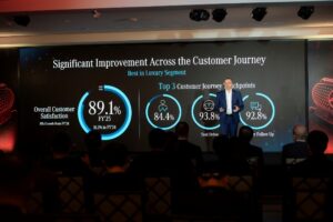 นายพุทธิ ตุลยธัญ รองประธานเจ้าหน้าที่บริหารและกรรมการฝ่ายบริการลูกค้า บริษัท เมอร์เซเดสเบนซ์ (ประเทศไทยจำกัด ได้กล่าวถึงความสำเร็จและวิสัยทัศน์ด้านบริการลูกค้าว่า “ในปี 2568 ที่ผ่านมา ฝ่ายบริการลูกค้าประสบความสำเร็จอย่างโดดเด่น โดยคว้าอันดับที่ 2 ในการรักษาลูกค้าของเมอร์เซเดส-เบนซ์ ในระดับภูมิภาค และได้รับคะแนนความพึงพอใจของลูกค้า (5 Star Rater) สูงถึง 4.90 คะแนน โดยมีการเปิดตัวบริการใหม่ อาทิ Mercedes-Benz In-Car Store ในเดือนธันวาคม เพื่อให้ลูกค้าสามารถอัปเกรดหรือต่ออายุแพ็กเกจ Digital Extras ได้อย่างง่ายดายผ่านหน้าจอรถยนต์รุ่นที่รองรับ* รวมถึงการนำเสนอโปรแกรม Service Select ทางเลือกใหม่สำหรับการบำรุงรักษารถยนต์ที่มีอายุ 7 ปีขึ้นไป* พร้อมเสริมพอร์ตโฟลิโออะไหล่แท้เมอร์เซเดส-เบนซ์ ด้วย StarParts ซึ่งเป็นอะไหล่กลุ่มบำรุงรักษาที่คุ้มค่าสำหรับรถยนต์อายุ 5 ปีขึ้นไปโดยเฉพาะ และการแนะนำระบบ XENTRY Workshop เพื่อยกระดับประสบการณ์ดิจิทัลของลูกค้าให้ดียิ่งขึ้น