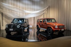 - Mercedes-Benz G 580 with EQ Technology ครั้งแรกกับการสานต่อตำนาน 45 ปี ของ G-Class เจ้าของฉายา “King of Off-Road” มาพร้อมระบบขับเคลื่อนพลังงานไฟฟ้า 100% และมอเตอร์ไฟฟ้า 4 ตัว ทำให้สามารถทำแรงบิดได้สูงสุดถึง 1,164 นิวตันเมตร ซึ่งนับเป็นตัวเลขที่มากที่สุดของแบรนด์เมอร์เซเดส-เบนซ์ เปิดตัว 2 รุ่น ในรุ่น STANDARD ราคาเริ่มต้น 9,500,000 บาท และรุ่น EDITION ONE ราคาเริ่มต้น 12,200,000 บาท โดยสำหรับรุ่น EDITION ONE จะจำหน่ายจำนวนจำกัดเพียง 6 คัน ในประเทศไทย นอกจากนี้ยังเปิดตัว Mercedes-Benz G 450 d ยนตรกรรม The new G-Class ที่มาพร้อมขุมพลังเครื่องยนต์ดีเซลตามคำเรียกร้องของกลุ่มลูกค้าชาวไทย จำหน่ายในราคาเริ่มต้น 12,200,000 บาท