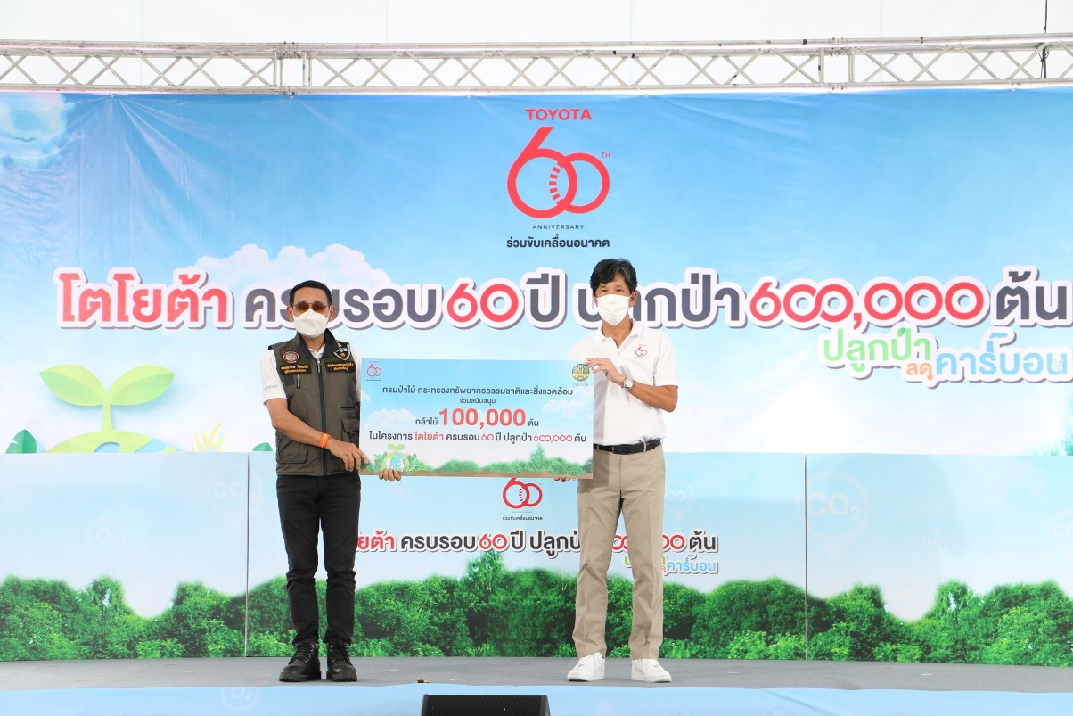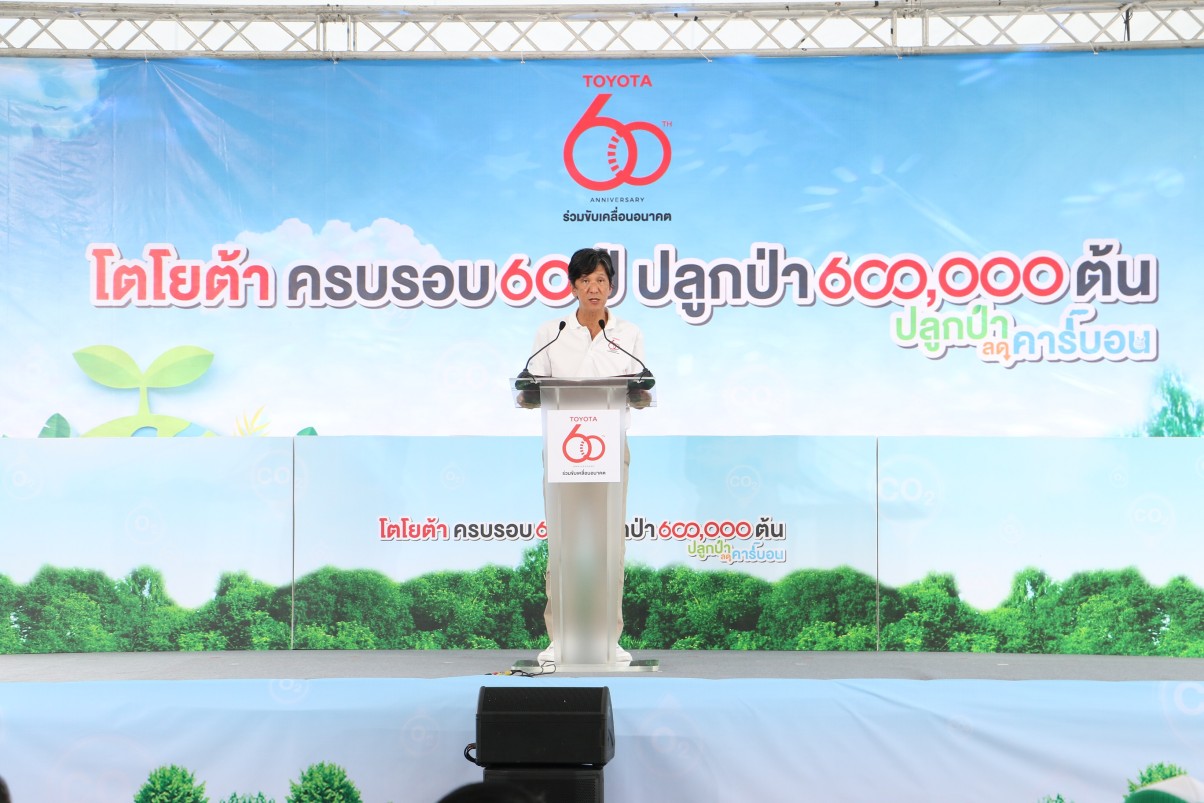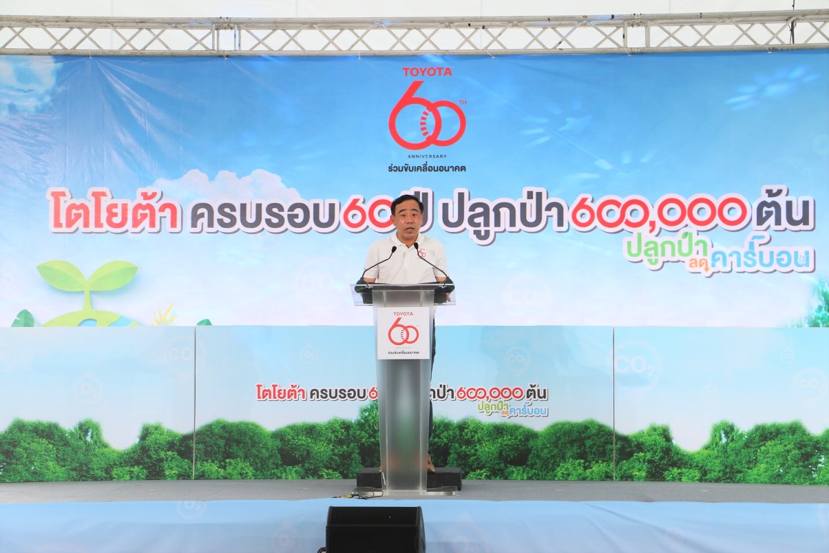 นอกจากนั้น เพื่อเป็นการขยายผลการดำเนินงานด้านสิ่งแวดล้อม เนื่องในวาระโอกาสฉลองการดำเนินงานในประเทศไทยครบ 60 ปี โตโยต้าจึงได้ริเริ่มโครงการ “โตโยต้า ครบรอบ 60 ปี ปลูกป่า 600,000 ต้น” เพื่อเป็นอีกหนึ่งส่วนสำคัญในการช่วยดูดซับก๊าซคาร์บอนไดออกไซด์ โดยตั้งเป้าเป็นโครงการระยะยาว ร่วมกับหน่วยงานท้องถิ่น กรมป่าไม้ ตลอดจนพันธมิตรทางธุรกิจต่าง ๆ ในการเพิ่มพื้นที่สีเขียวอย่างต่อเนื่อง โดยสำหรับปี 2565 ได้วางแผนในการเพิ่มพื้นที่สีเขียวภายในโรงงานโตโยต้าทั้ง 3 แห่ง เป็นจำนวน 200,000 ต้น เริ่มต้นจากการปลูกป่า 18,000 ต้น ที่โรงงาน โตโยต้าบ้านโพธิ์ในวันนี้ ซึ่งได้รับการสนับสนุนต้นกล้าจากกรมป่าไม้ และตั้งเป้าขยายการดำเนินงานสู่ภายนอก อีก 400,000 ต้น ต่อไป เพื่อให้ครบตามเป้าหมายในปีนี้ ที่ 600,000 ต้น