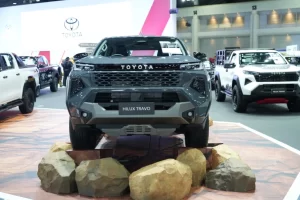 เริ่มจากการแนะนำรถกระบะไฮลักซ์รุ่นใหม่ “Hilux Travo” และ “Travo-e BEV” ในวันที่ 10 พฤศจิกายนที่ผ่านมา รถรุ่นนี้ถูกพัฒนาขึ้นเพื่อตอบสนองความต้องการของลูกค้าชาวไทย และนอกจากคุณภาพ ความทนทาน และความน่าเชื่อถือ (QDR) อันเป็นเอกลักษณ์ของโตโยต้าแล้ว ยังมาพร้อมสมรรถนะในการขับขี่ที่ทรงพลัง ควบคู่กับความสะดวกสบายในการขับขี่และความประหยัดน้ำมันที่ยอดเยี่ยม ด้วยระบบที่เรียกว่า “Dynamic Cloud Suspension” Hilux Travo ยังถูกดีไซน์ภายใต้แนวคิด “ไซเบอร์ซูโม่” พร้อมคอนเซปต์ “แข็งแกร่ง คล่องตัว” ถ่ายทอดความแข็งแกร่ง ความคล่องตัว และทรงพลัง อันสะท้อนถึงรากฐานประเพณีญี่ปุ่น และจิตวิญญาณแห่งความเป็นนักสู้ไว้อย่างลงตัว โดยไฮลักซ์ ทราโว่ ได้รับการต้อนรับอย่างล้นหลามจากสื่อมวลชน และโดยเฉพาะอย่างยิ่งจากลูกค้า และตั้งแต่การเปิดตัวไฮลักซ์ ทราโว่จนถึงวันนี้ เราได้รับยอดจองไฮลักซ์รวมทุกรุ่นแล้วกว่า 10,000 คัน