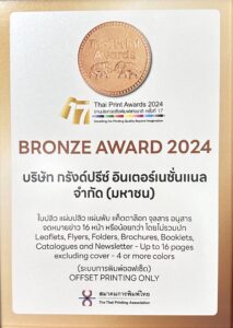 โรงพิมพ์กรังด์ปรีซ์ฯ รับรางวัล BRONZE AWARD ใน “การประกวดสิ่งพิมพ์แห่งชาติ ครั้งที่ 17” ประเภทระบบการพิมพ์แบบออฟเซ็ต จากสมาคมการพิมพ์ไทย ประจำปี 2567